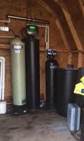 To correct the problem as inexpensively as possible, we refurbished his water softener and acid neutralizer tank. Then we installed an Aqua Systems AIF Iron filter, a ultraviolet light for bacteria protection and a reverse osmosis drinking system in the kitchen. The result was crystal clear, soft, iron free water throughout the his house. Thank you Allen & Melissa., Gadsden Alabama