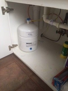 Our newest customer in Clanton AL purchased their retirement cabin on the lake. In their previous home, they would buy cases of bottled water and stack it in the storage room. They don't have the luxury of extra space in their new lake house. Also, Mrs. C. never enjoyed lugging the heavy cases of water home from the store. Both of these problems are solved by installing an under sink reverse osmosis drinking water system. It produces up to 50 gallons per day of purified water. Mr. & Mrs. C. also don't have to worry about recycling all the wasted plastic from bottled water.